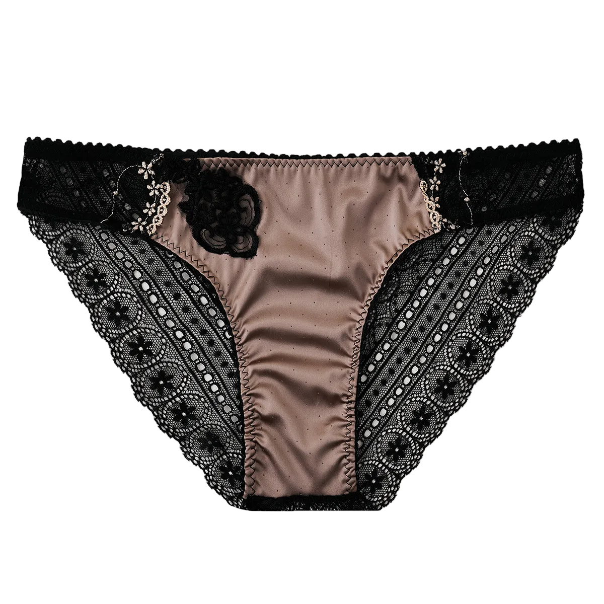 Delicate yet daring, it combines lace, satin, and embroidered appliqué for a striking finish. The adjustable straps ensure a flawless fit, while the floral embellishment adds a romantic touch. A piece designed to feel both luxurious and empowering with every wear.