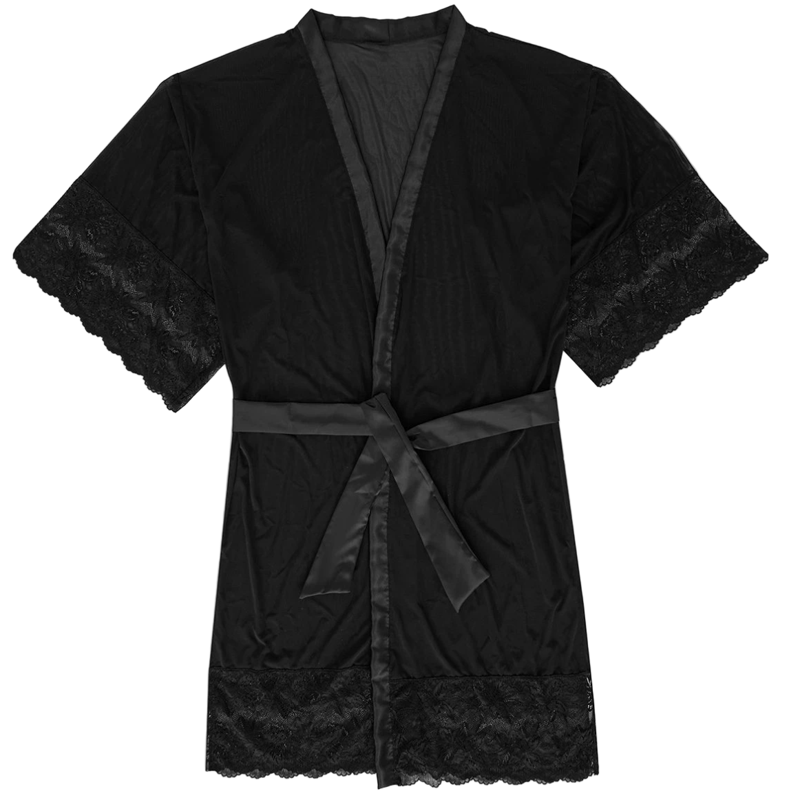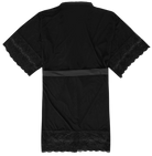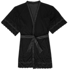 Lightweight and sensual, the Raven Kimono drapes effortlessly with sheer black elegance. Delicate lace details trace the sleeves and hem, adding a touch of refinement while accentuating your silhouette. Perfect for gifting or indulging yourself, it’s a piece you’ll fall in love with the moment you slip it on.