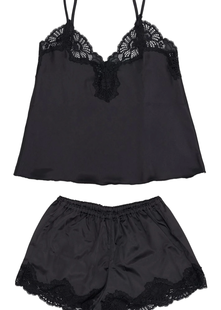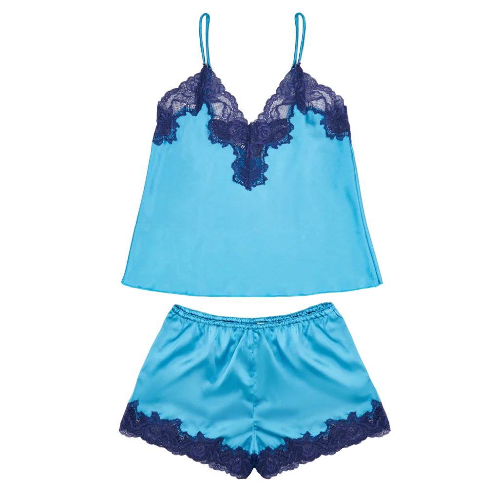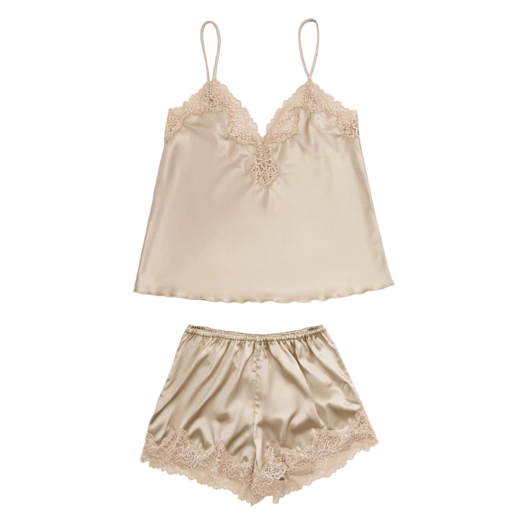 Indulge in timeless elegance with this satin sleepwear set, detailed with delicate lace accents. Featuring a soft camisole with adjustable straps and matching shorts, it blends comfort and allure in equal measure. Designed to move effortlessly from dreamy nights to relaxed mornings, each colorway brings its own touch of romance to this refined collection.