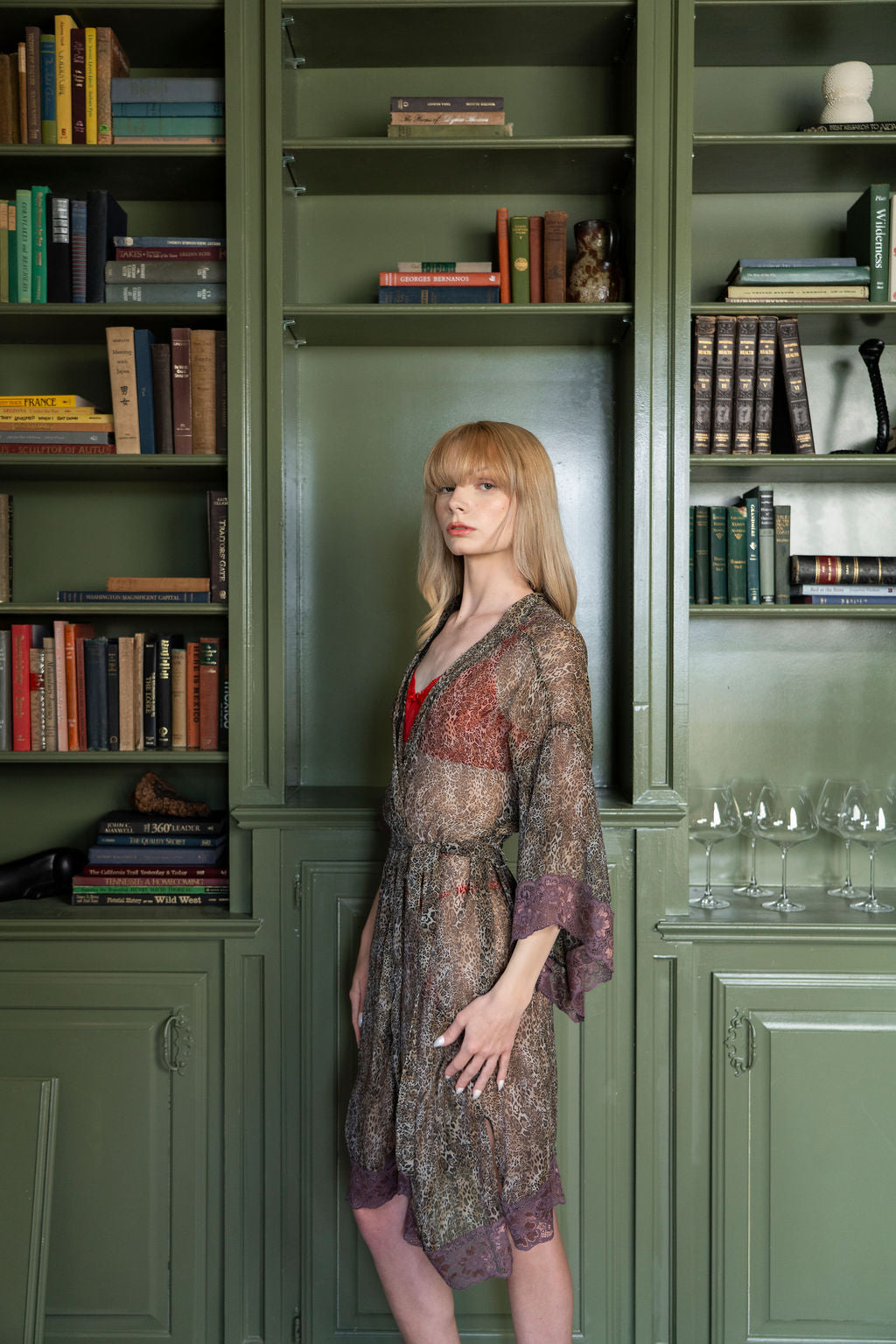 Flowing and seductive, the Allure Kimono is crafted from sheer chiffon in a striking animal print, finished with delicate lace trim. Designed to drape effortlessly, it layers luxury with sensuality, creating a statement piece that’s as daring as it is refined. Perfect for elevating lingerie or styling as outerwear, this kimono embodies the confident spirit of Allure.