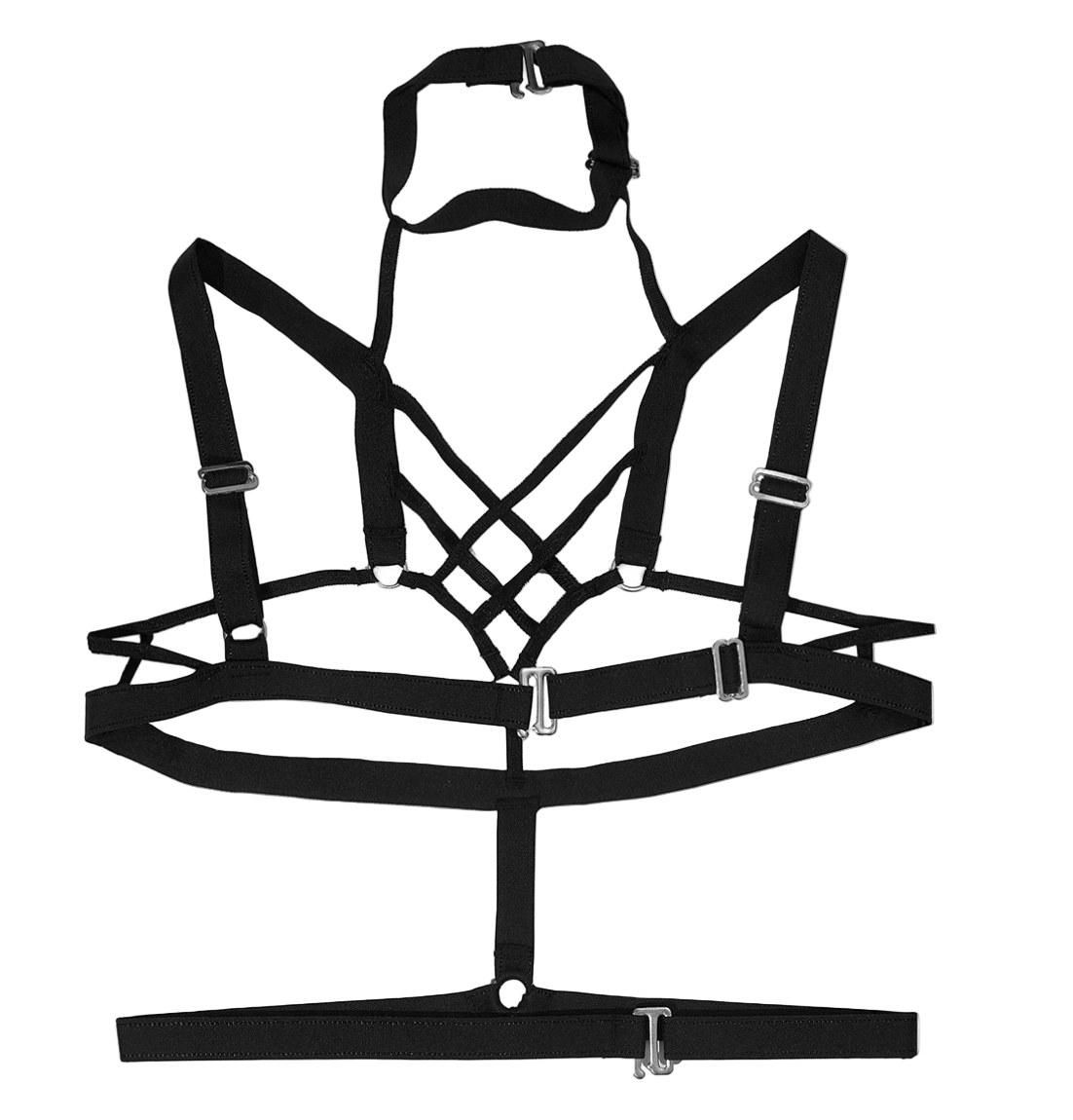 Edgy and versatile, this strappy harness transforms any lingerie or outfit into a statement. With bold cut-outs and adjustable straps, it sculpts your silhouette while adding an unmistakable touch of seduction. Pair it with bras, bodysuits, or on its own to command attention.