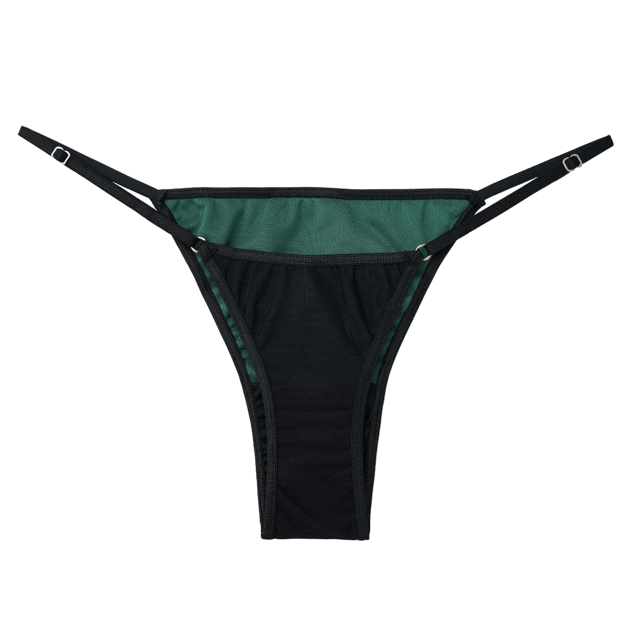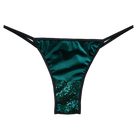 Sleek and minimal with a touch of drama, this thong features soft emerald velvet along the front and a glittering sequin accent at the base. Delicate straps frame the hips, creating a bold, modern silhouette that feels both refined and daring.