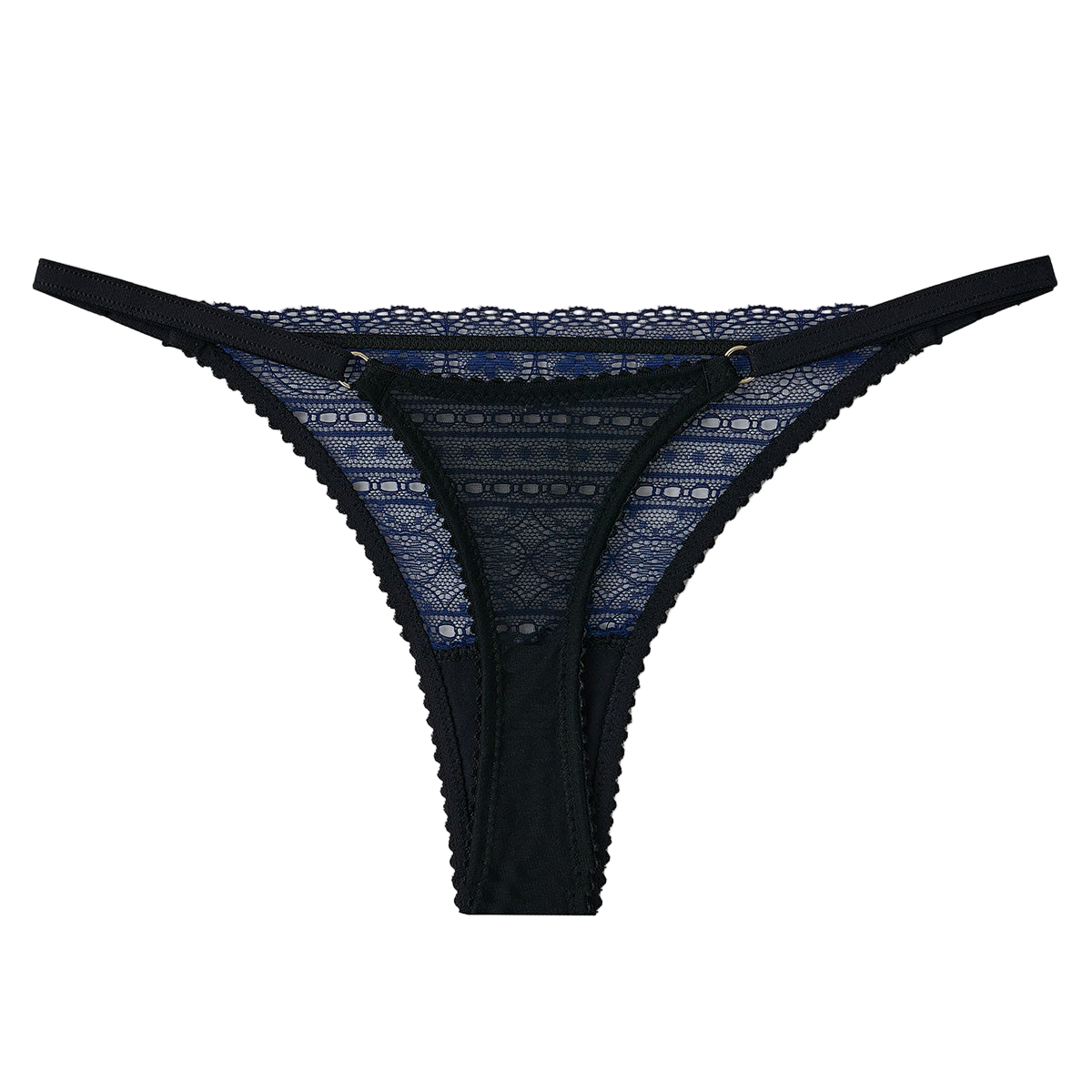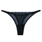 Sleek and seductive, the Myst Thong is made from intricate navy lace with a sheer tulle finish. Its adjustable straps allow for a customizable fit, while the delicate appliqué details add a refined feminine touch. Perfect for creating a look that is both daring and sophisticated.
