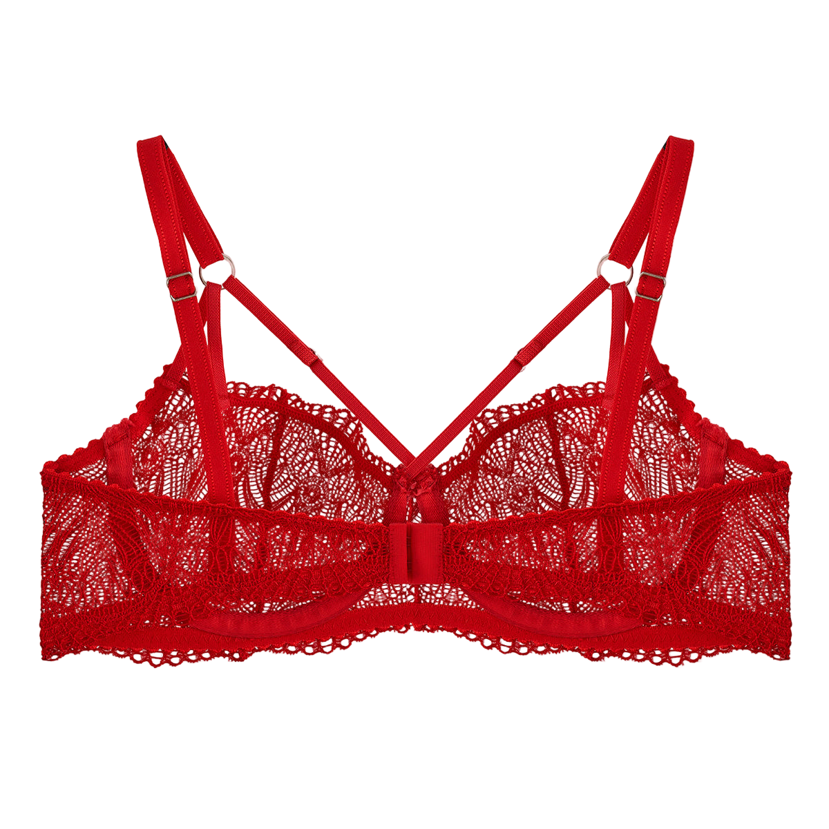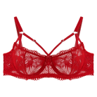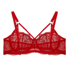 Immerse yourself in elegance with this underwire bra, crafted from delicate red lace that reveals a subtle touch of transparency. Designed to highlight your femininity, it features fine adjustable straps adorned with a split-strap clasp for a unique detail of allure. The back is finished with a luxurious three-position velour hook, ensuring both comfort and a perfect fit. Where sophistication meets sensuality, this bra is more than lingerie — it’s an intimate expression of style and confidence.