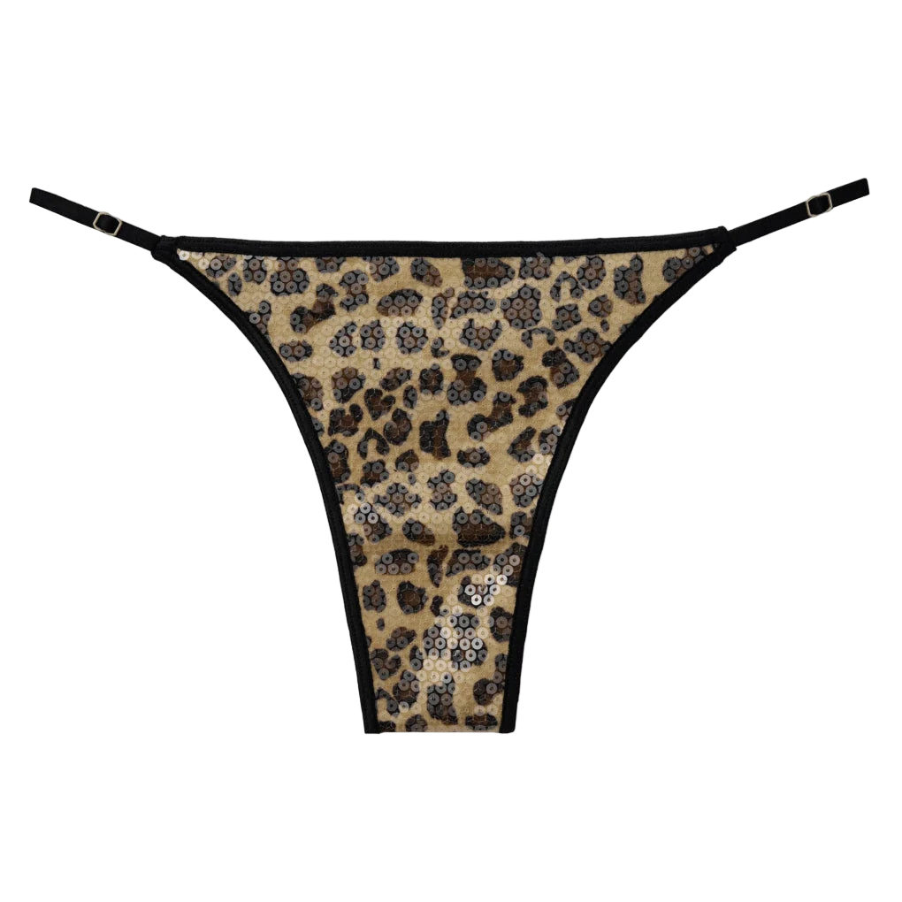 An adjustable ultra-sexy thong in leopard sequin lace, designed to dazzle. Lightweight and daring, it pairs minimal coverage with maximum impact for a bold, feminine finish.