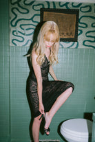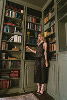 The Muse Slip Dress is crafted from intricate black lace, designed to embrace the body with effortless elegance. Its Marilyn-inspired neckline frames the décolleté beautifully, while the open cross-back straps add a modern, alluring edge. Flowing with every movement, this slip strikes the perfect balance between sophistication and sensuality.