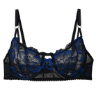 Crafted from two-tone sapphire lace and Swiss tulle, the Sapphire Underwire Bra combines elegance with everyday support. Its delicate embroidery enhances your natural shape, while adjustable straps and back closure ensure a flawless fit. A statement of sophistication and allure.