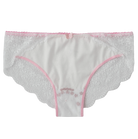 A romantic brief in sheer embroidered tulle and soft cotton lace. Finished with delicate floral patterns and pink trims, it offers a flattering fit with a feminine and dreamy touch.