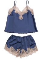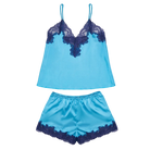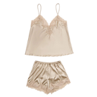 Indulge in timeless elegance with this satin sleepwear set, detailed with delicate lace accents. Featuring a soft camisole with adjustable straps and matching shorts, it blends comfort and allure in equal measure. Designed to move effortlessly from dreamy nights to relaxed mornings, each colorway brings its own touch of romance to this refined collection.