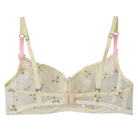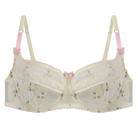 Elegant and romantic, this underwire bra features pastel floral guipure embroidery over sheer tulle. The supportive cups and adjustable straps ensure comfort without compromising delicacy. A timeless piece designed to enhance your shape with subtle sophistication.