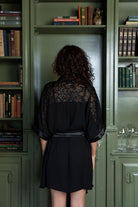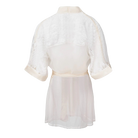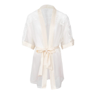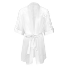 Wrap yourself in elegance with this sheer robe, crafted from delicate ivory lace and airy tulle. Finished with satin accents, it drapes softly over the body, blending comfort and seduction for a truly timeless look.