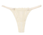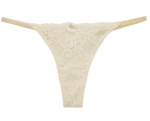 A dainty thong cut from floral cream lace with scallop edging for a graceful touch. Finished with a central bow, it offers adjustability for a personalized fit and a playful yet refined style. A versatile piece that’s as comfortable as it is alluring.