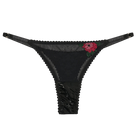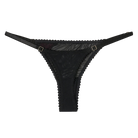 Designed to turn heads, this daring thong pairs embroidered tulle with sleek vinyl for a modern, provocative look. The delicate floral embroidery softens the bold design, while the adjustable straps guarantee a perfect fit. With its flattering “less” cut back, this piece exudes confidence and sensuality—ideal for making a bold statement in your lingerie wardrobe.