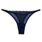 Sleek and seductive, the Myst Thong is made from intricate navy lace with a sheer tulle finish. Its adjustable straps allow for a customizable fit, while the delicate appliqué details add a refined feminine touch. Perfect for creating a look that is both daring and sophisticated.