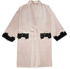Crafted from silky satin and detailed with delicate lace, this robe drapes effortlessly over the body for a timeless look. Its flowing silhouette blends comfort, sophistication, and allure, perfect for layering or lounging in style.