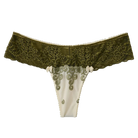 A refined blend of elegance and sensuality, this thong is made from moss-green satin jacquard with intricate lace trim. Designed for both comfort and allure, it hugs your curves with a soft yet striking finish. Perfect for those seeking a sophisticated lingerie essential that embodies grace, style, and confidence.
