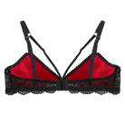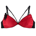This triangle bra combines delicate red jacquard with intricate black lace, offering an effortlessly seductive silhouette. Lightweight and wireless, it features adjustable straps and a customizable back for comfort and ease. Lace appliqué details add a refined finish, making it a versatile piece that’s both bold and feminine.